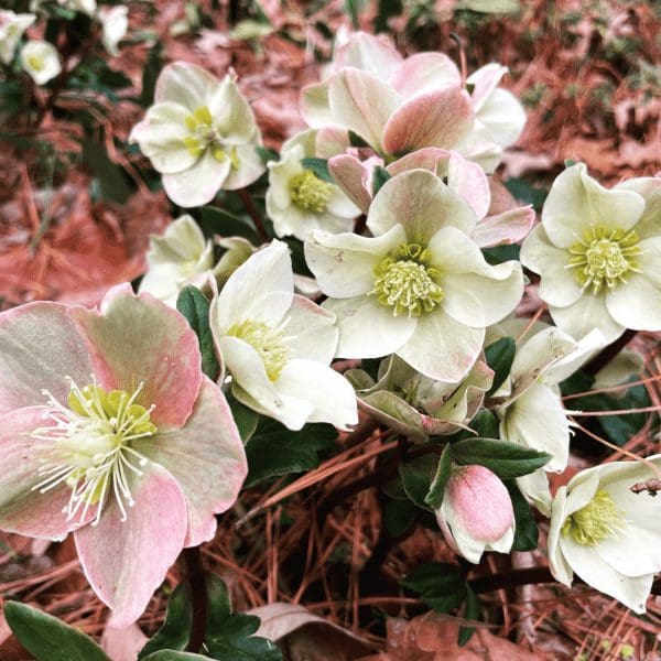 Within the past few decades plant breeders have been busy with different Helleborus species, crossing them back and forth, looking for something new and different. In our Winter Garden you can see some of the results of this effort with varieties that are reliably evergreen, sterile (will not seed around), bloom earlier, and with upright flowers on sturdy stems you can actually see without having to get down on your knees. Look for ‘Cinnamon Snow’, ‘Mahogany Snow’, and ‘Joseph Lempler’, all of which will be blooming this month.