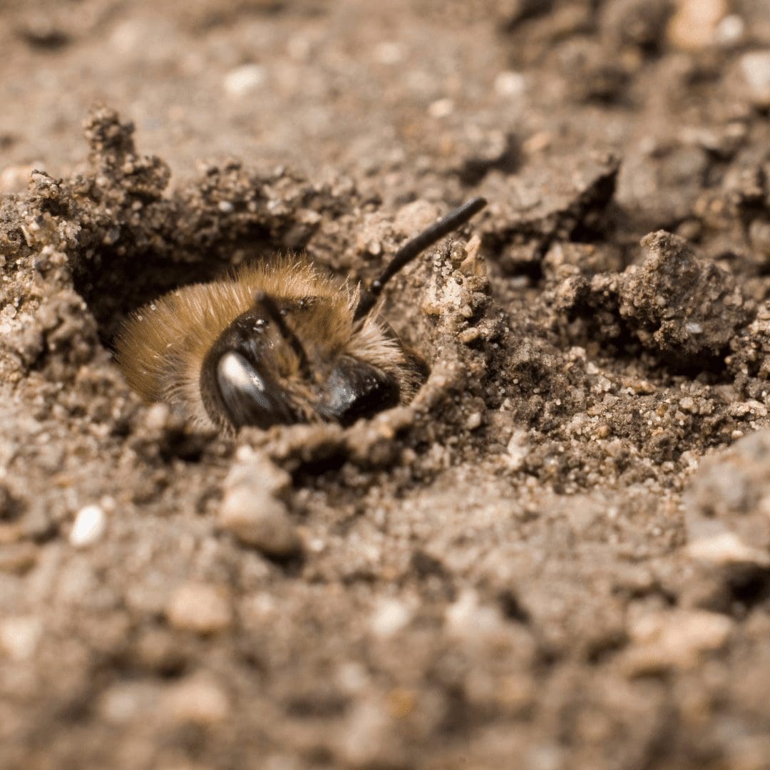 Incorporate features like bare soil patches for ground-nesting bees and dead wood or stems for cavity-nesting bees to provide nesting habitat.
